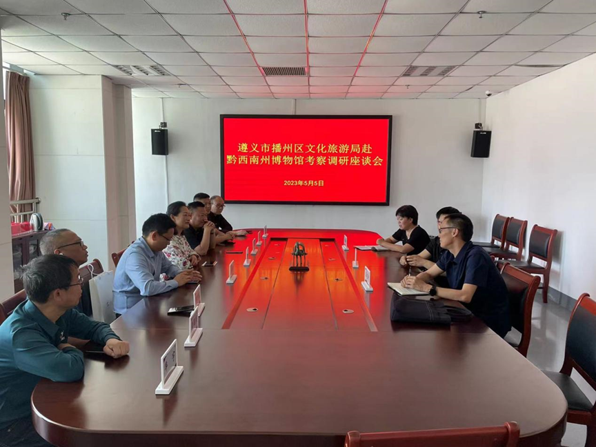 5月5日,遵义市播州区文旅局一行到我馆调研,了解我馆升级改造、陈列布展等情况,兴义市文博单位的负责同志陪同调研。座谈会上,我馆详细介绍了展览升级改造及布展工作情况,双方就博物馆未来提高服务意识、形象窗口以及人文名片等方面进行了深入交流,对利用博物馆促进地方文化旅游事业充满信心。