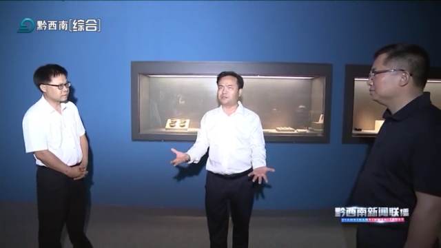 6月15日,州委书记陈昌旭莅临我馆调研文化建设工作,调研组一行先后走进基本陈列展厅、文物修复室和文物库房,深入了解我馆在文物保护、展陈、藏品管理、拓片资料整理等方面的工作开展情况,并与我馆职工深入交流。陈昌旭强调,要立足现有硬件条件和工作基础,进一步完善场馆功能,用足用好资源,通过开展丰富多样的文化活动,提高文化服务便利性可及性。要优化博物馆展陈布局,持续加强文物保护管理和研究利用,讲好文物故事,让珍贵文物活起来。州委常委、兴义市委书记、义龙新区党工委书记顾先林参加调研。