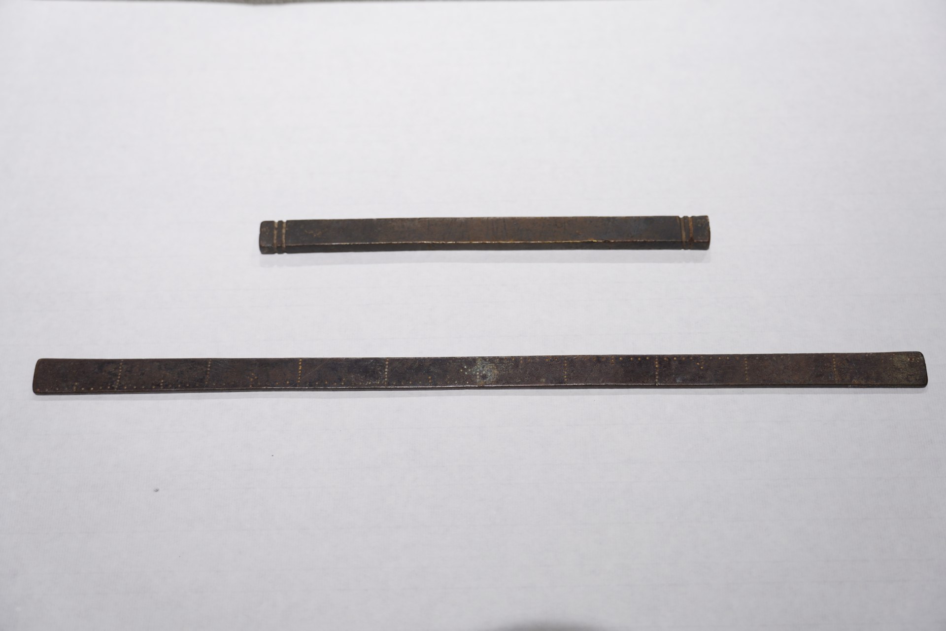 8月14日上午,兴义市顶效马别社区的王芳芹女士来到州博物馆。在博物馆民间藏品鉴定室,王芳芹捐赠了祖上传下来的两件文物。一件是民国时期的铜尺,上有“李记”二字,此类物品多为裁缝店用以量较。一件是民国时期的铜镇纸,主要用于写字作画时压纸,以防纸张移动或飘起。