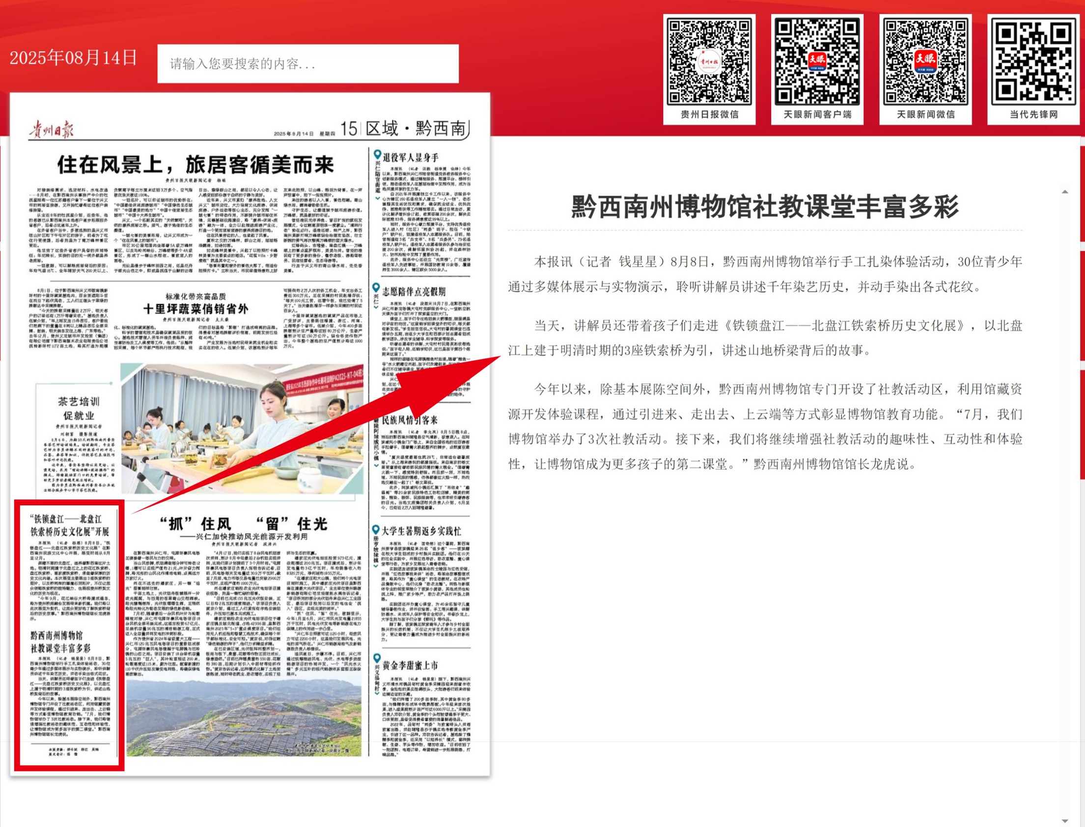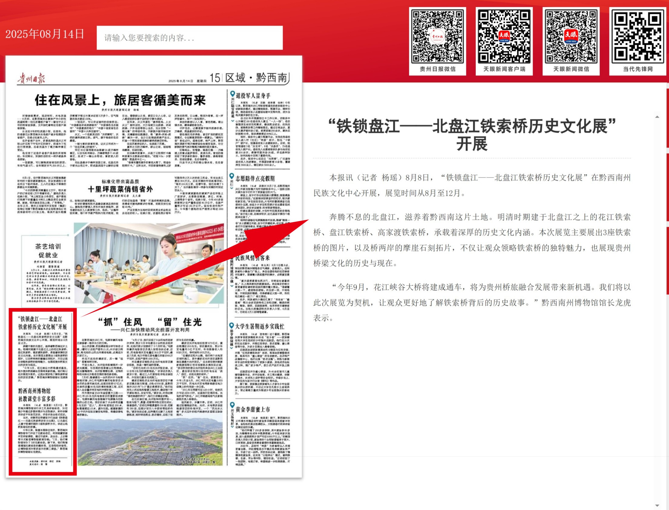 我馆“北盘江铁索桥历史文化展”登载贵州日报