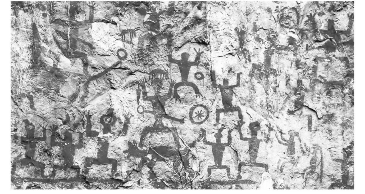 古代的宗教文化是极为流行的,尤其是时间越为久远的古代宗教色彩韵味浓厚,祭祀作为古代人们日常生活十分关键且十分重大的一个场合,奏乐伴舞都是必不可少的,而铜鼓也会应用于祭祀环节。尤其是人群聚集密度相对较高的地区,这种风俗凸显的韵味明显,铜鼓的宗教功能,并不是现阶段学者的臆测,而是有一定可供考究的数据基础的,在广西宁明县地区出土的花山岩画当中就很好地阐述了铜鼓在巫术活动当中的作用,如图所示,人们常常会围着铜鼓跳舞,利用铜鼓来表达节日的庄重和巫术活动的肃穆,同时也会利用铜鼓来诉说自己的心胸和祈愿。